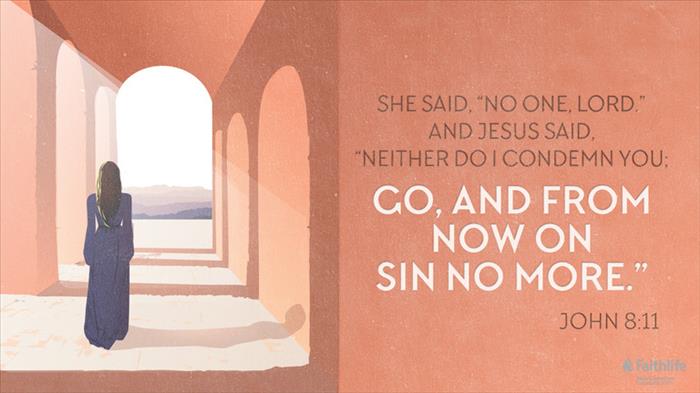 “我也不定你的罪。去吧!从此不要再犯罪了。”(约翰福音8:11)