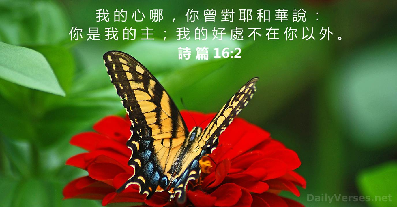 “我的心哪,你曾对耶和华说:‘你是我的主,我的好处不在你以外。’”(诗16:2)