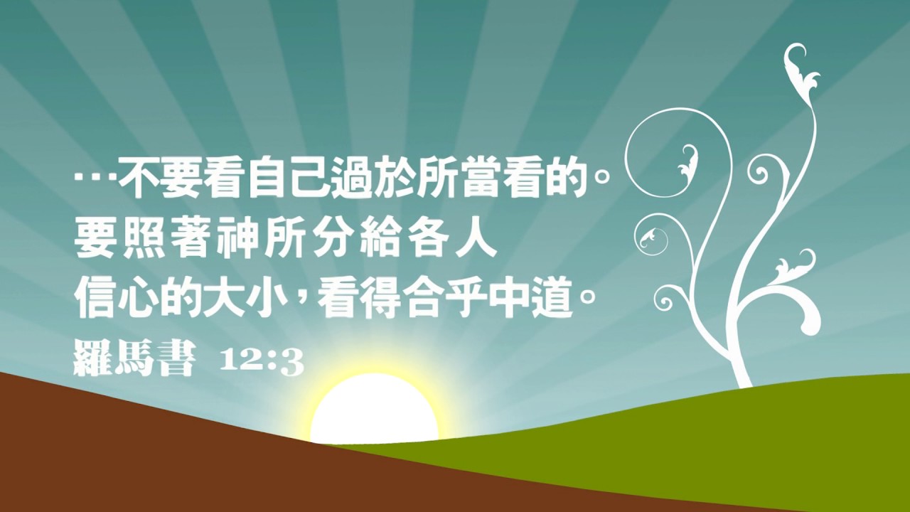 罗12:3,我凭着所赐我的恩,对你们各人说,不要看自己过于所当看的。要照着神所分给各人信心的大小,看得合乎中道。