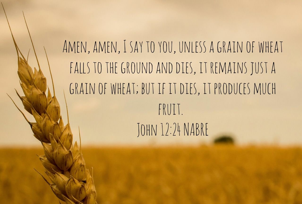 “我实实在在地告诉你们,一粒麦子不落在地里死了,仍旧是一粒。若是死了,就结出许多子粒来。”(约12:24)