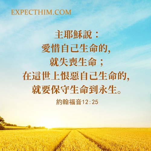 “爱惜自己生命的,就失丧生命。在这世上恨恶自己生命的,就要保守生命到永生。”(约12:25)