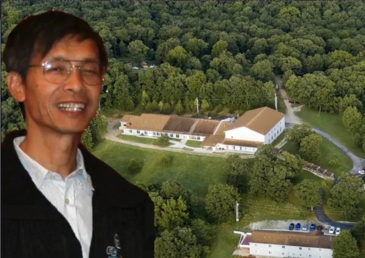 梁坤仪传道在福音大会上为卡森博士作翻译