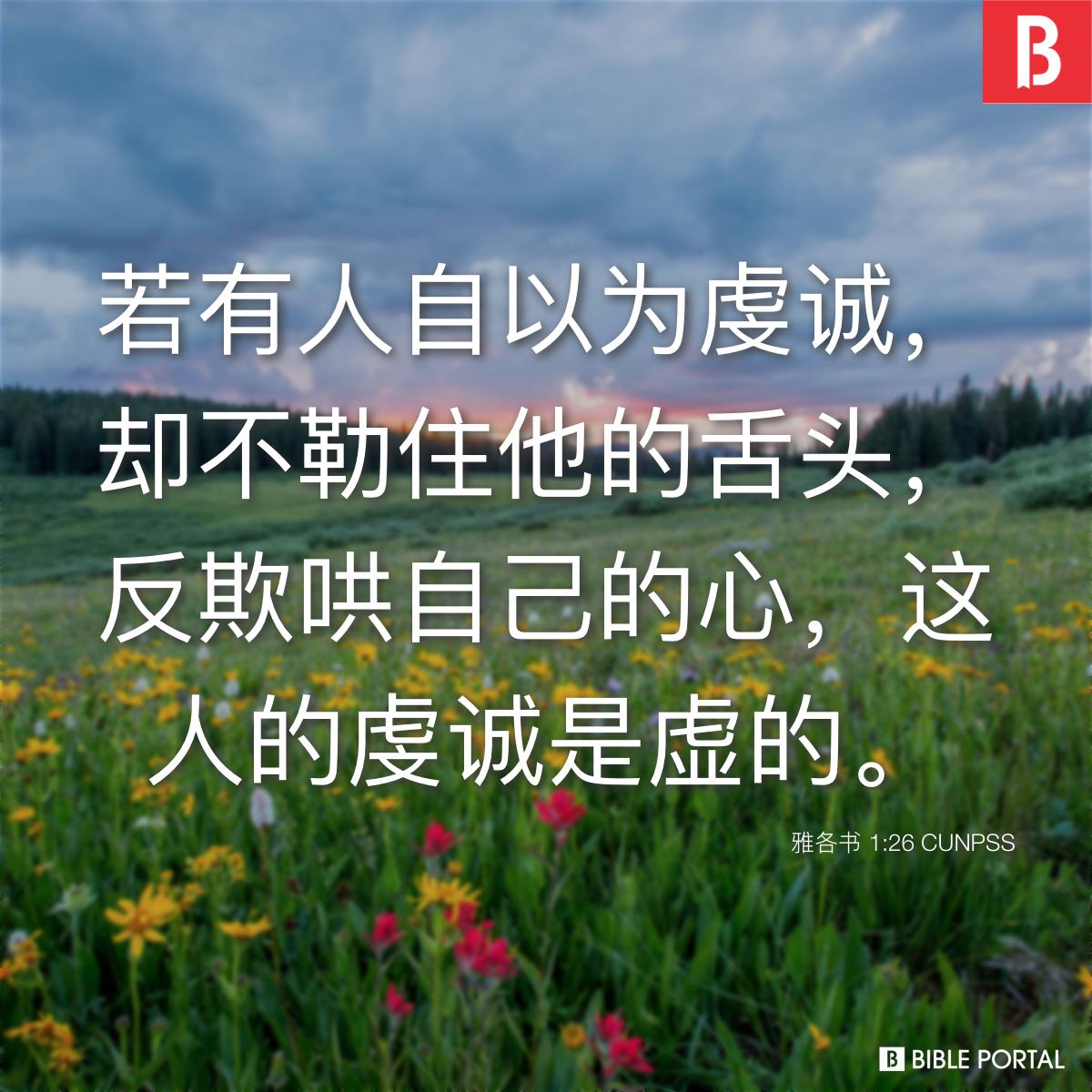 “若有人自以为虔诚,却不勒住他的舌头,反欺哄自己的心,这人的虔诚是虚的。”(雅1:26)