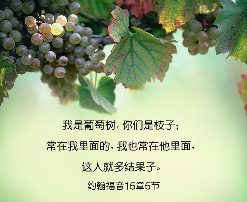 “你们要常在我里面,我也常在你们里面。枝子若不常在葡萄树上,自己就不能结果子。你们若不常在我里面,也是这样。我是葡萄树,你们是枝子。常在我里面的,我也常在他里面,这人就多结果子。因为离了我,你们就不能作什么。”(约15:4–5)