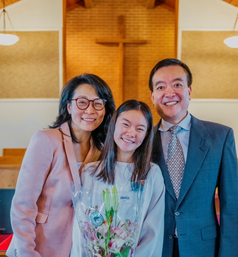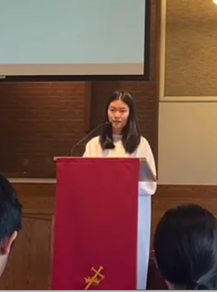 Hap­py East­er every­one! My name is Evan­ge­line Chiu and I’m so excit­ed to be bap­tized on this spe­cial day. Today, I want to pro­fess my faith as a Chris­t­ian. I believe in the trin­i­ty, that God is 3 in one, Father, Son, and Holy Spir­it. I believe that God cre­at­ed every­thing. And I believe that God is sov­er­eign, rul­ing over the world and work­ing in our lives every sin­gle day. I believe that man was made in the image of God but fell into sin and became so sin­ful and so filled with evil that not even one was “right­eous, no, not one; no one under­stands; no one seeks for God.” (Romans 3: 10–11) I believe in Jesus Christ, who is God’s one and only Son, who is ful­ly God and ful­ly man. He came to save sin­ners like me, and earned my jus­ti­fi­ca­tion by liv­ing a per­fect life and dying on the cross as a sac­ri­fice of atone­ment. Isa­iah 53:51 says he “was pierced for our trans­gres­sions, he was crushed for our iniq­ui­ties; the pun­ish­ment that brought us peace was on him, and by his wounds we are healed.” How­ev­er, Christ not only died on the cross for my sins, but he also rose from the dead on the third day! The pow­er­ful Son of God has con­quered death and rules as Lord over all. Through repent­ing of my sins and believ­ing in Jesus, I received his gifts of jus­ti­fi­ca­tion, adop­tion, becom­ing filled with the Holy Spir­it, and enter­ing into a new covenant with God.