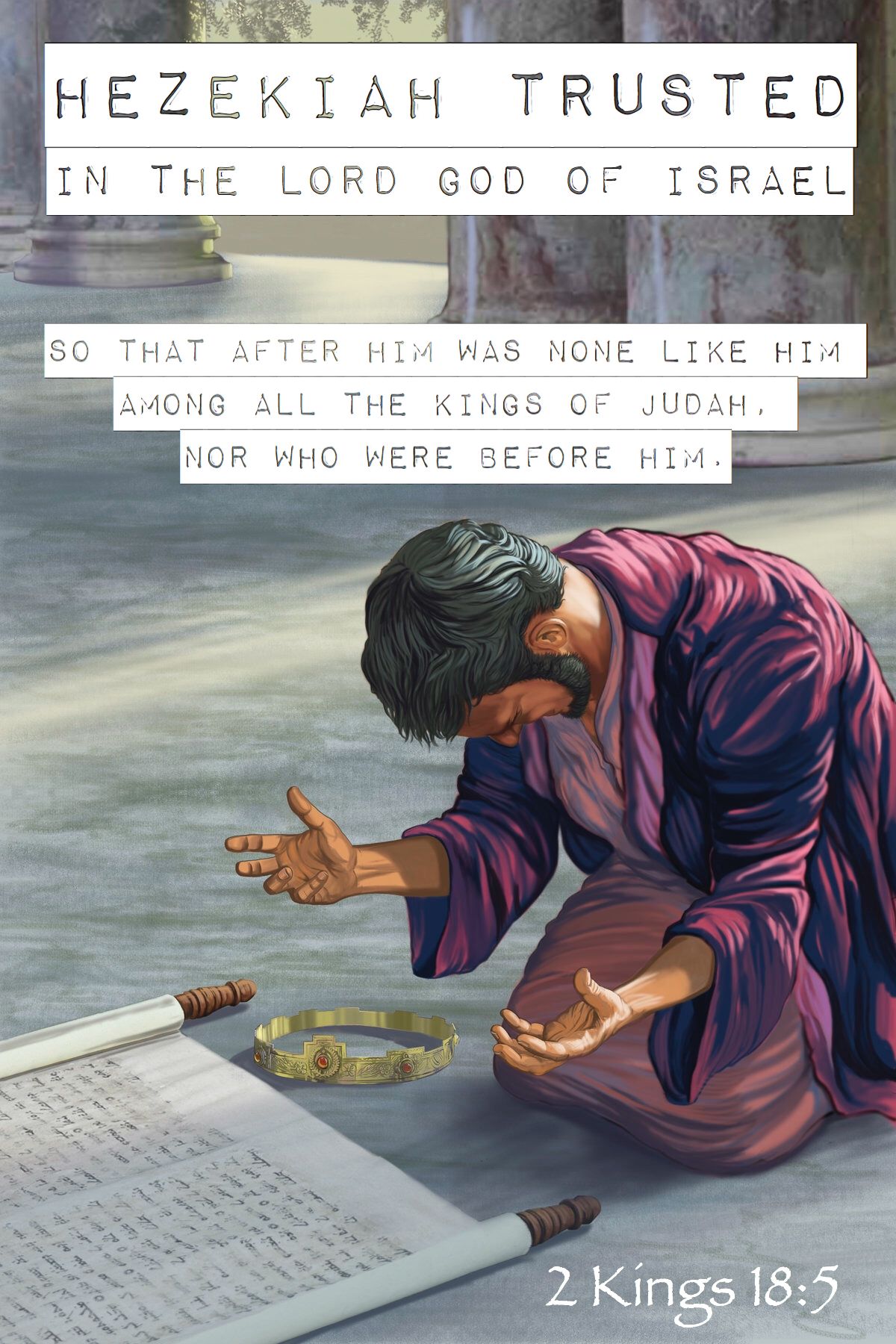 希西家是南国的好王,行耶和华眼中看为正的事:他效法大卫一切所行的,废去邱坛、毁坏柱像、砍下木偶;他打碎摩西在旷野所造的铜蛇;因为以色列人将救赎的象征变成偶像,向铜蛇烧香膜拜。圣经如此评价他:希西家倚靠耶和华以色列的神,在他前后的犹大列王中、没有一个及他的;因为他专靠耶和华,总不离开,谨守耶和华所吩咐摩西的诫命。耶和华与他同在,他无论往何处去,尽都亨通。(列王纪下18:5–7)