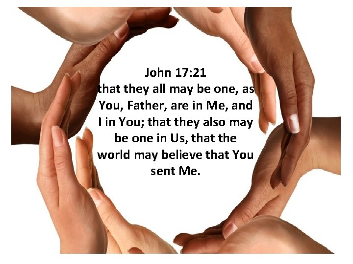 “我不但为这些人祈求,也为那些因他们的话信我的人祈求。使他们都合而为一。”(约17:20–21)