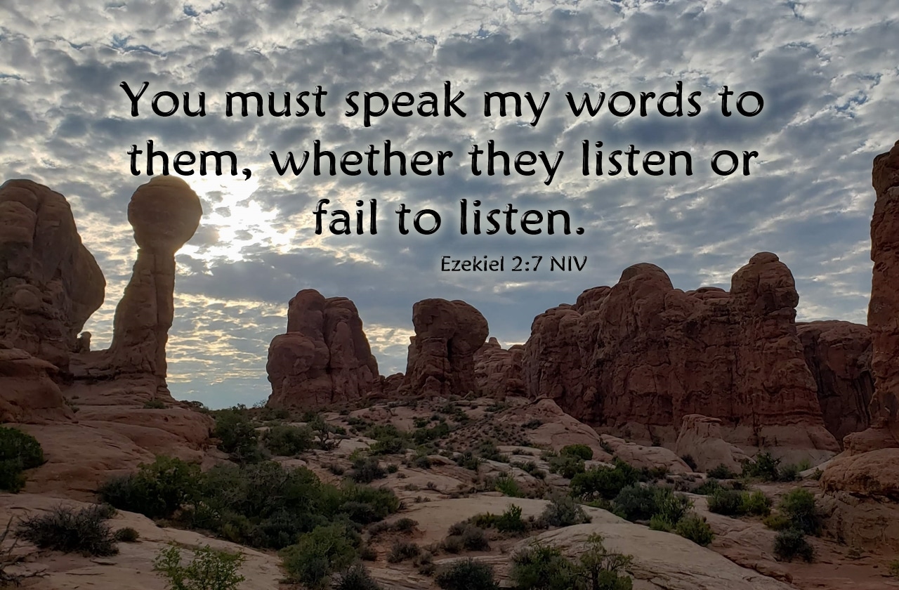 先知的责任,就是“只管”将神的话“告诉他们”(NIV译作You must speak my words to them.)。不要管他们听,或者不听。神会为祂自己的话负责任。神可以使他们心里刚硬而不听,也可以让他们心里柔软而听从。