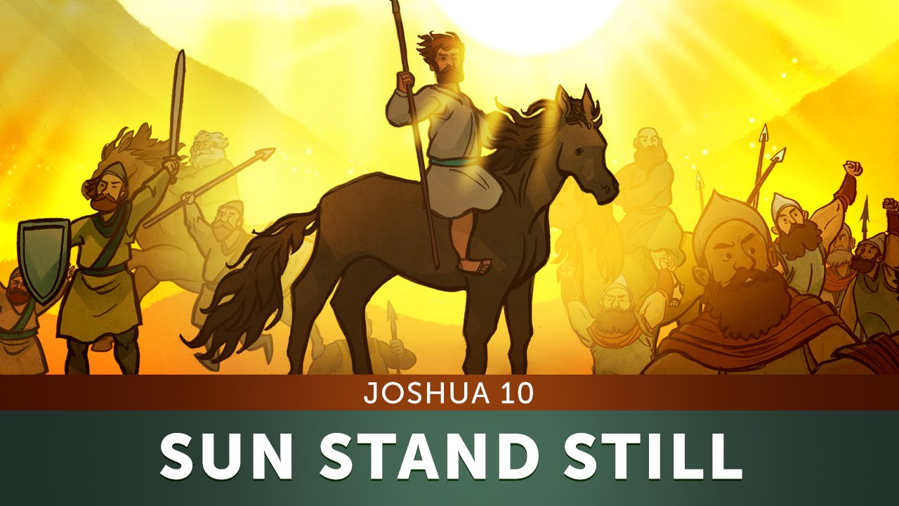 “当耶和华将亚摩利人交付以色列人的日子,约书亚就祷告耶和华,在以色列人眼前说:日头啊,你要停在基遍;月亮啊,你要止在亚雅仑谷。于是日头停留,月亮止住,直等国民向敌人报仇。这事岂不是写在雅煞珥书上吗?日头在天当中停住,不急速下落,约有一日之久。在这日以前,这日以后,耶和华听人的祷告,没有像这日的,是因耶和华为以色列争战。”(10:12–13)
