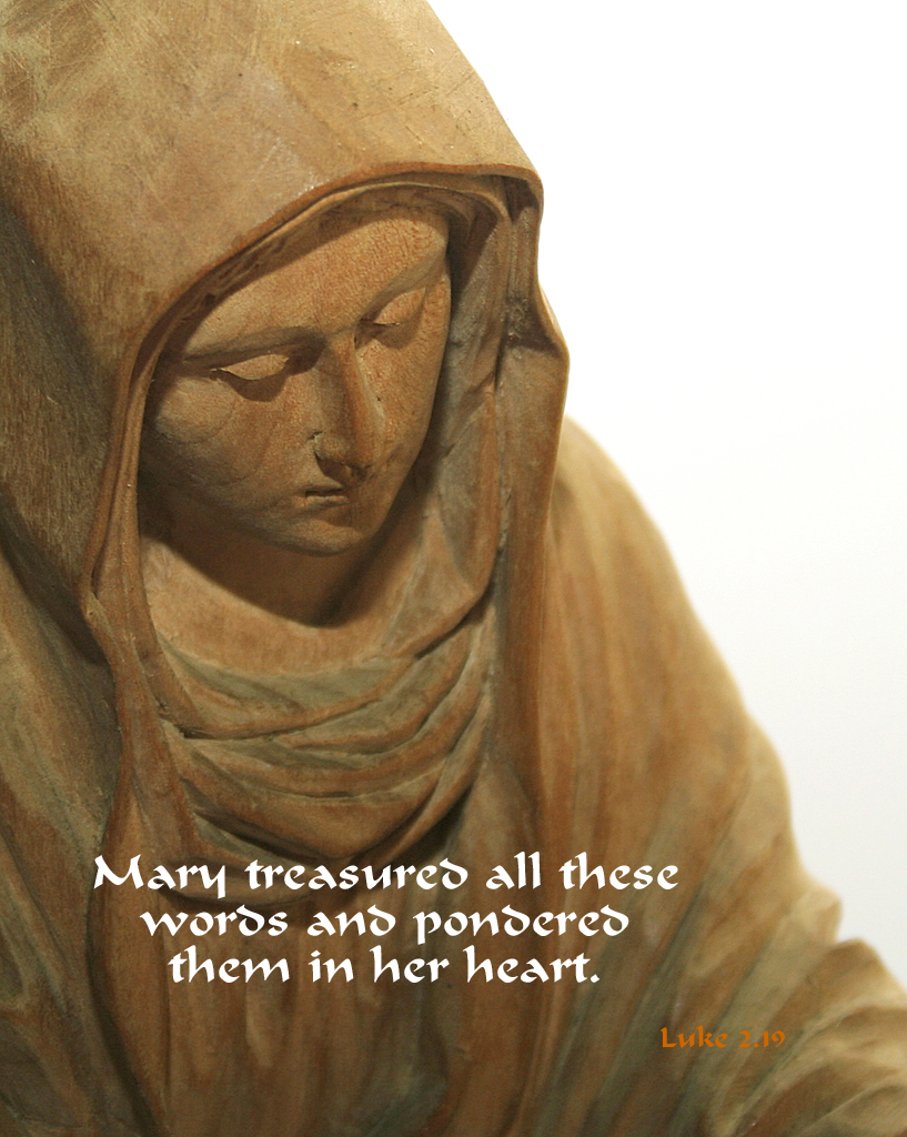 当牧羊人受天使指示来朝见婴孩耶稣、并将天使论这孩子的话对众人传讲时,路加福音记载,“马利亚却把这一切的事存在心里,反复思想。”(路2:19)