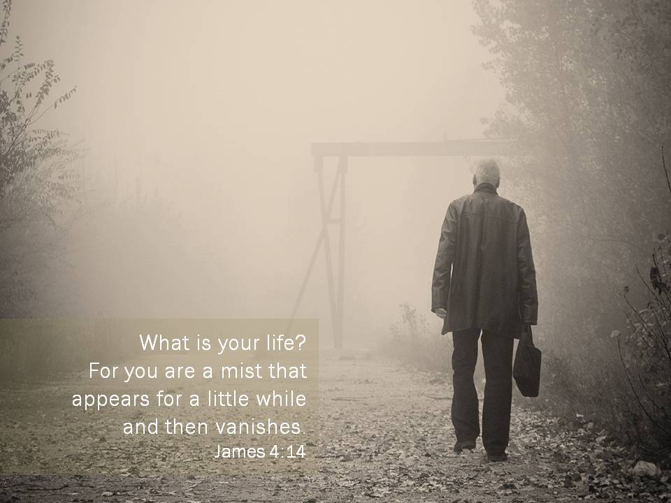 嗐!你们有话说:“今天明天我们往某城里去,在那里住一年,作买卖得利。”其实明天如何,你们还不知道。你们的生命是什么呢?你们原来是一片云雾,出现少时就不见了。你们只当说:“主若愿意,我们就可以活着,也可以做这事,或做那事。”(雅各书4:13–15)