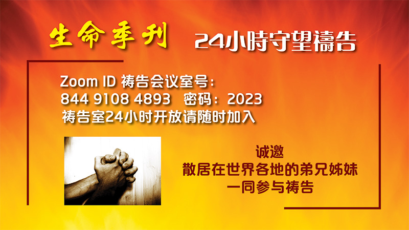 受Asbury大学年轻人的复兴的感动,生命季刊于2月20日周一晚7点开启了“24小时为教会复兴守望祷告”的Zoom平台,从那天起到现在,我们已经持续祷告了12天,288个小时。60多位散居世界各地的传道人和同工参与了带领守望祷告的事奉,无法统计的弟兄姊妹参加了守望祷告。