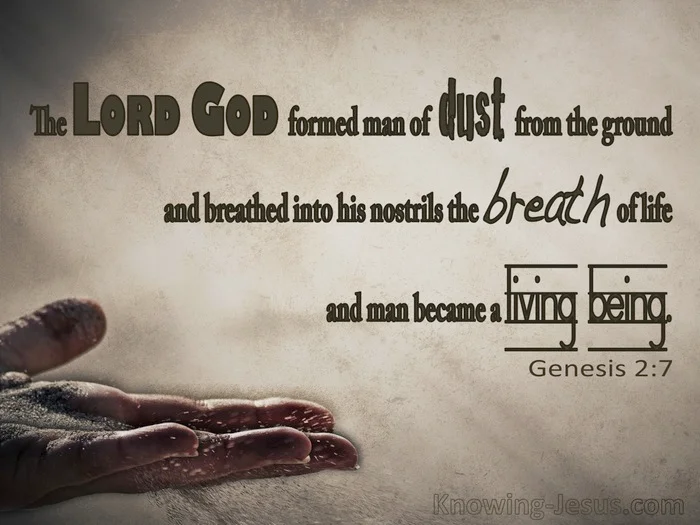 “耶和华神用地上的尘土造人,将生气吹在他的鼻孔里,他就成了有灵的活人,名叫亚当。”(创世记2:7)