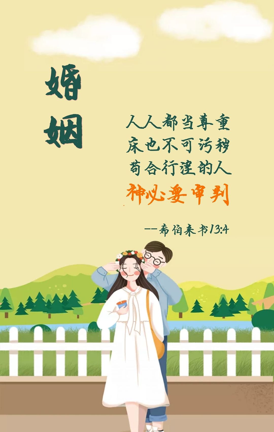 “婚姻,人人都当尊重,床也不可污秽,因为苟合行淫的人,神必要审判。”(来13:4)