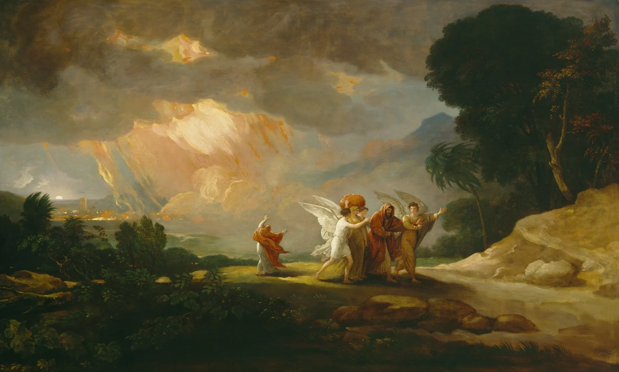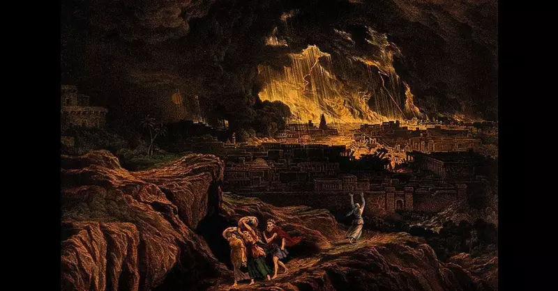 天使因耶和华怜悯罗得,就拉着他的手和他妻子的手,并他两个女儿的手,把他们领出来,安置在城外。然后命令他们:“逃命吧!不可回头看,也不可在平原站住,要往山上逃跑,免得你被剿灭。”接下来就是,“当时耶和华将硫磺与火,从天上耶和华那里,降与所多玛和蛾摩拉,把那些城和全平原,并城里所有的居民,连地上生长的,都毁灭了”(19:24–25)。天使命令(当然就是神的命令)“不可回头看”。但第26节却告诉我们“罗得的妻子在后边回头一看,就变成了一根盐柱”。