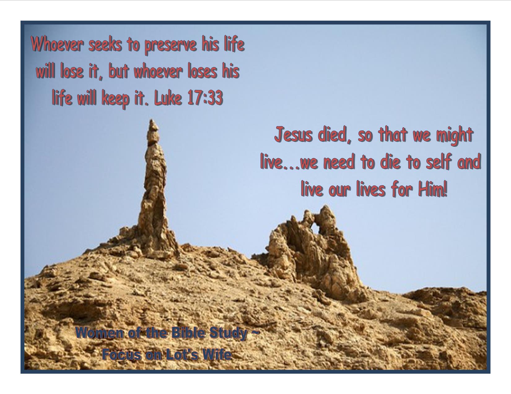 结合前面的经文,我想这样意译一下这节经文:凡想回头看世界的,必要丧掉自己的生命(就会像罗得的妻子那样变成一个无生命的“盐柱”);凡不回头看世界的,必救活自己的生命(就会活出一个从基督得着的真实的生命)。