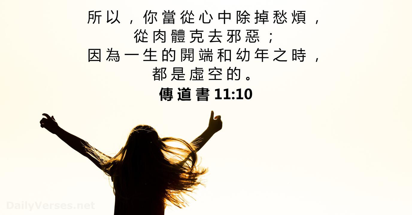 传道书11:10,“所以你当从心中除掉愁烦,从肉体克去邪恶,因为一生的开端和幼年之时,都是虚空的。”