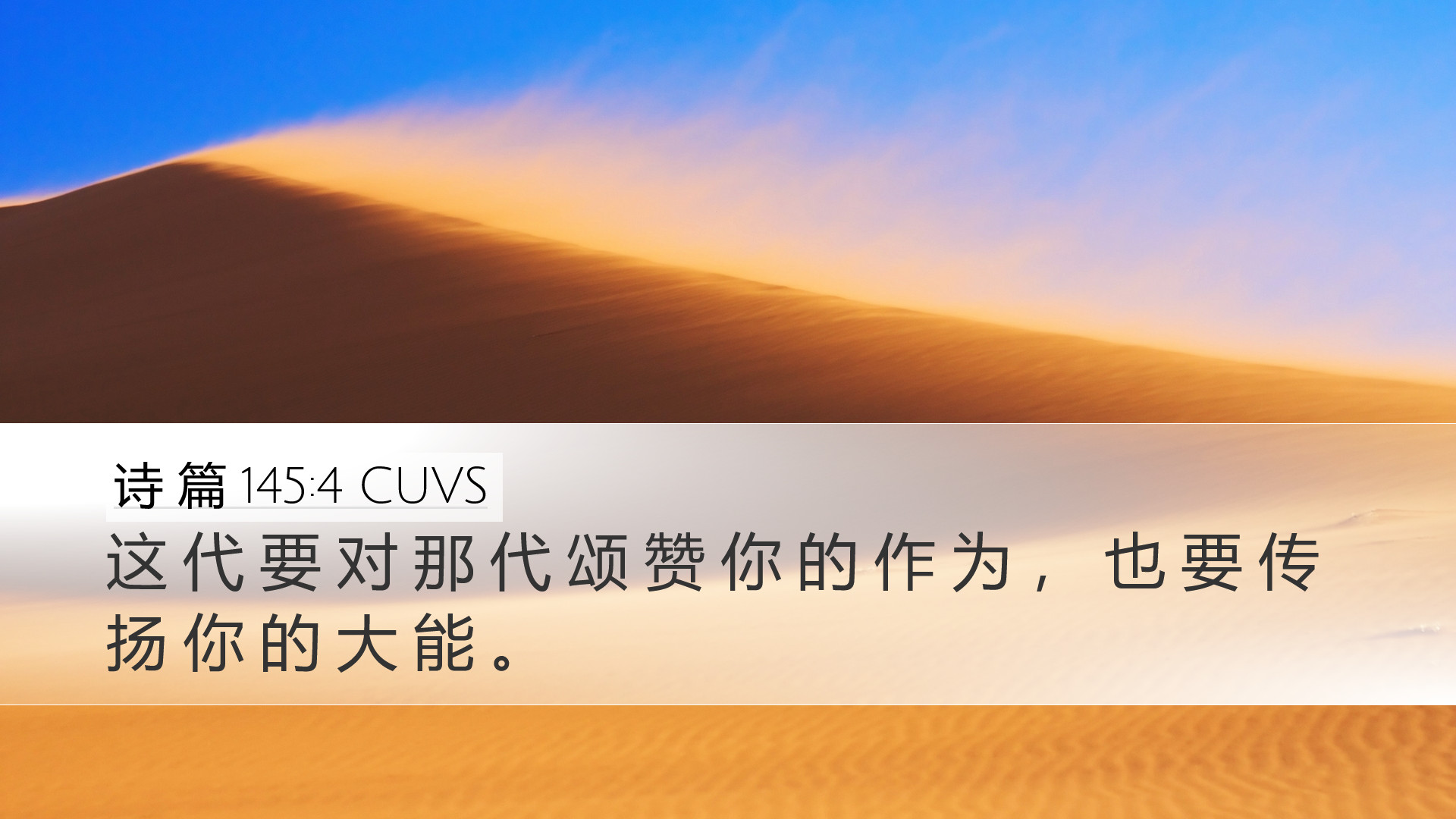“这世代要向那世代称赞你所做的,并要宣告你的大能作为。我要默想你荣耀威严的尊荣,默想你的奇妙作为。”(诗篇145:4–5)