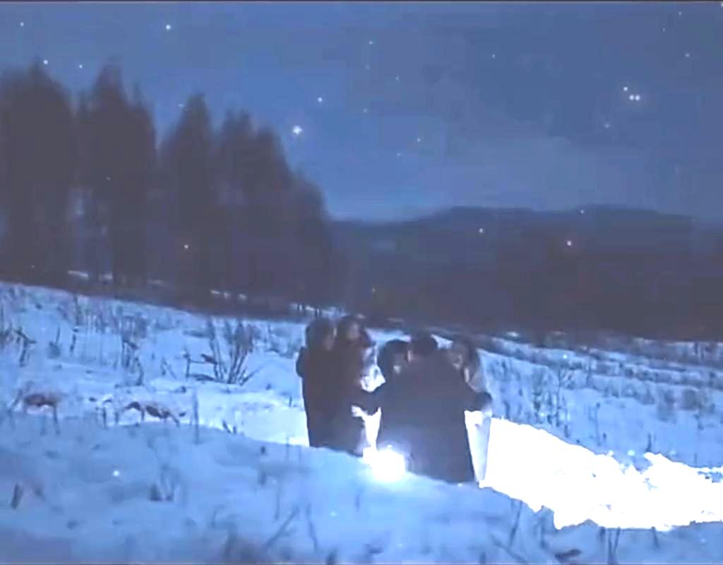 就在此时,前方亮起微弱的灯光,冰天雪地之中,但见两个老人奋力铲雪的身影……仅凭着一句“走后山的路”,这对年迈的父母亲,一锨,又一锨,已经清除了数公里的积雪,为了让儿子回家!……静静的洁白的山谷中,响彻了儿子儿媳的喊声:“妈——”,“爸——!”而父母亲那苍老、浑厚又欣喜若狂的声音回应着:“儿子——!”