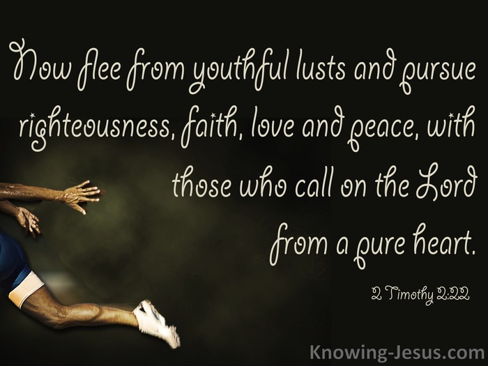 “你要逃避少年的私欲,同那清心祷告主的人追求公义、信德、仁爱、和平。惟有那愚拙无学问的辩论,总要弃绝,因为知道这等事是起争竞的。 (2:22–23)