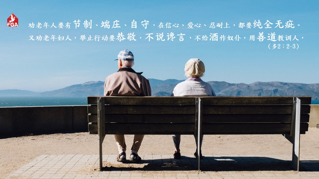 “劝老年人要有节制、端庄、自守,在信心、爱心、忍耐上都要纯全无疵。”(2:2)