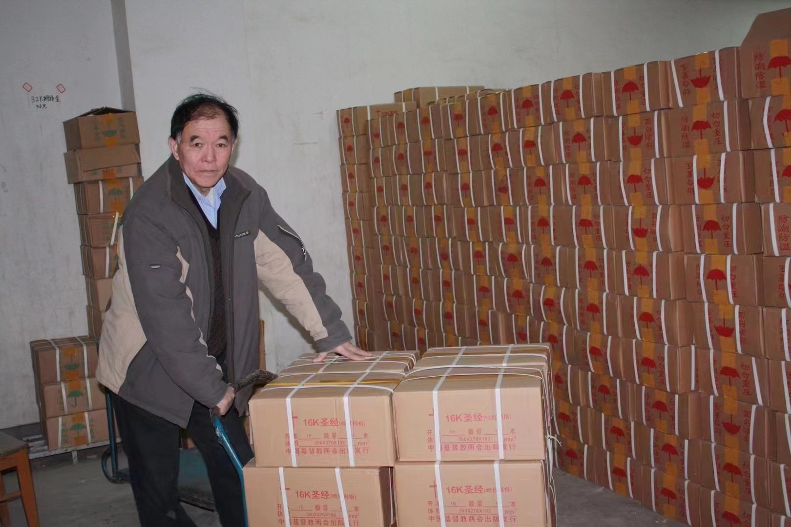 我在我的机构主要做圣经发行,我是一个义务的圣经搬运工,做了四十多年。到现在乐此不疲。我们的事奉主要是服事边远贫穷地区的教会,谁要买圣经,谁需要圣经,我会很快地去调拨给他。一生就专门做这一件事:圣经搬运工。