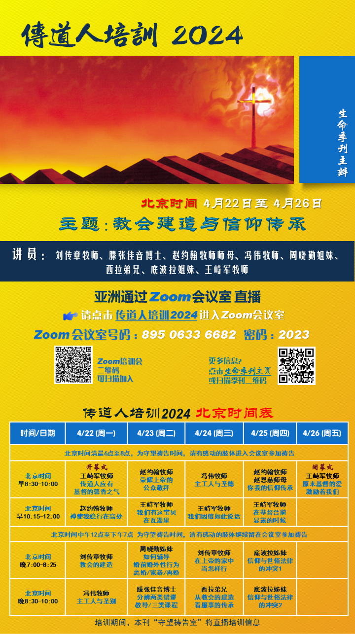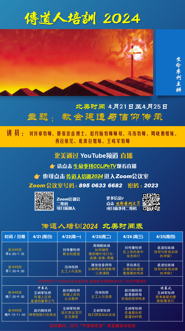 2024传道人培训 北美时间表