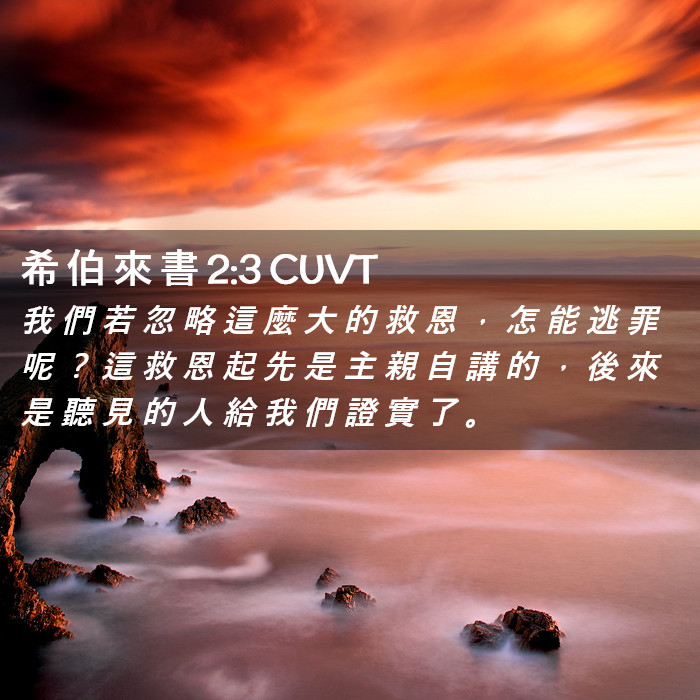 “我们若忽略这么大的救恩,怎能逃罪呢?这救恩起先是主亲自讲的,后来是听见的人给我们证实了。神又按自己的旨意,用神迹、奇事和百般的异能,并圣灵的恩赐,同他们作见证。” (2:3–4)