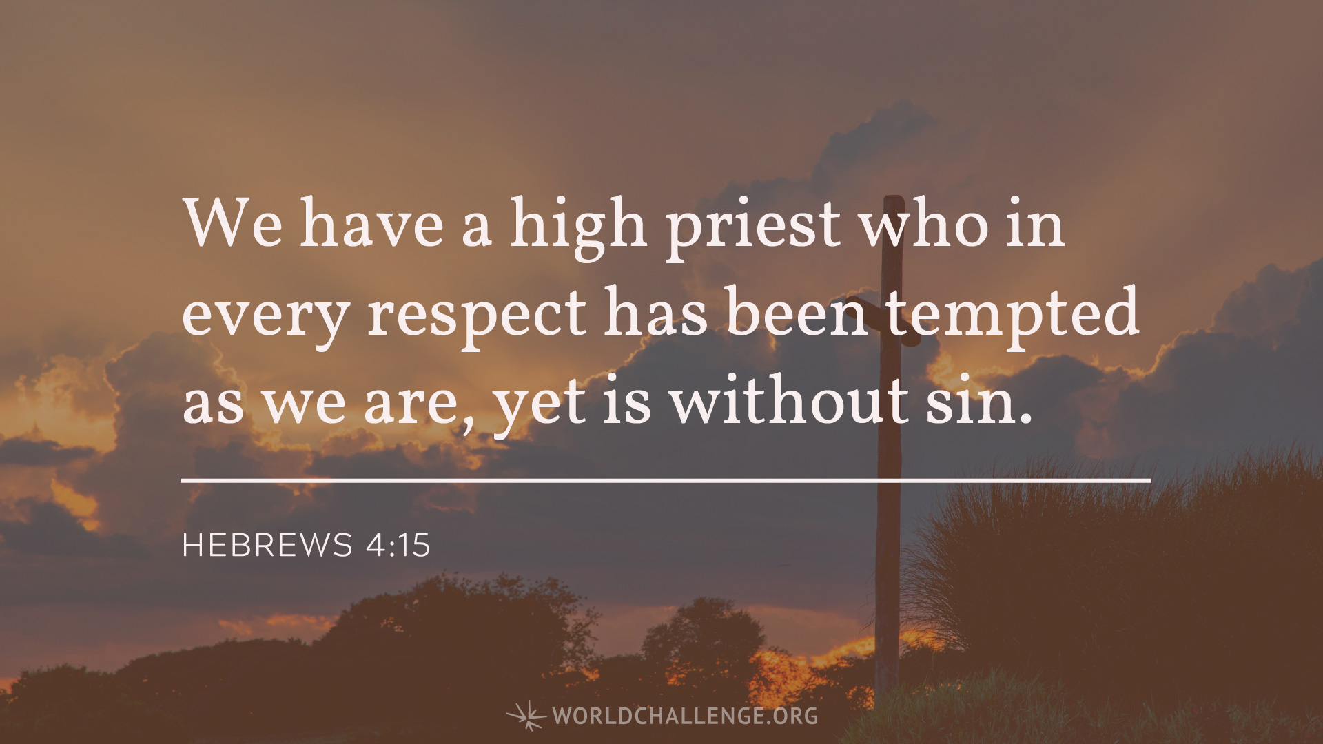 “我们既然有一位已经升入高天尊荣的大祭司,就是神的儿子耶稣,便当持定所承认的道。因我们的大祭司并非不能体恤我们的软弱。祂也曾凡事受过试探,与我们一样,只是祂没有犯罪。所以,我们只管坦然无惧的来到施恩的宝座前,为要得怜恤,蒙恩惠,作随时的帮助。”(希伯来书4:14–16)