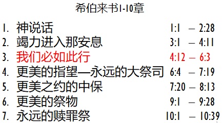 我们来到希伯来书前十章七段信息中的第三段,4:12节至6:3节,题目是我们必如此行。上一次的信息提到基督徒要将可夸的盼望和信心坚持到底,竭力进入那安息日的安息。接下来的这一段经文就阐述基督徒信心坚持到底该做的事情,以及为什么要这么做的原因,并且把重心放在解释第二章所提出来,我们所倚靠的那位慈悲忠信的大祭司以及祂所献上的挽回祭这件事上。