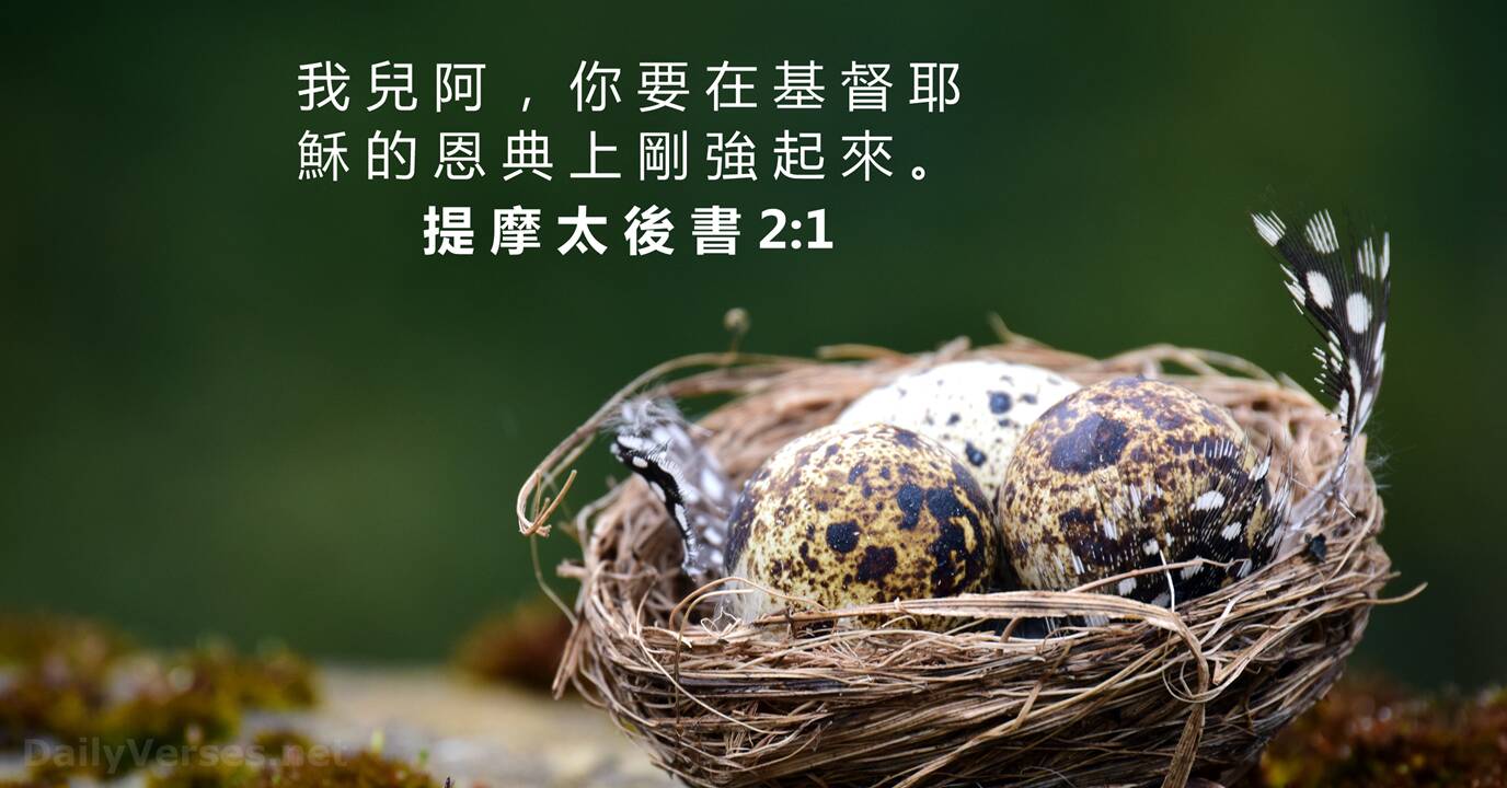 今日经文:1我儿啊,你要在基督耶稣的恩典上刚强起来……3你要和我同受苦难,好像基督耶稣的精兵。……15你当竭力,在神面前得蒙喜悦,作无愧的工人,按着正意分解真理的道。…20在大户人家,不但有金器银器,也有木器瓦器。有作为贵重的,有作为卑贱的。21人若自洁,脱离卑贱的事,就必作贵重的器皿,成为圣洁,合乎主用,预备行各样的善事。(提摩太后书2:1,3,15,20–21)