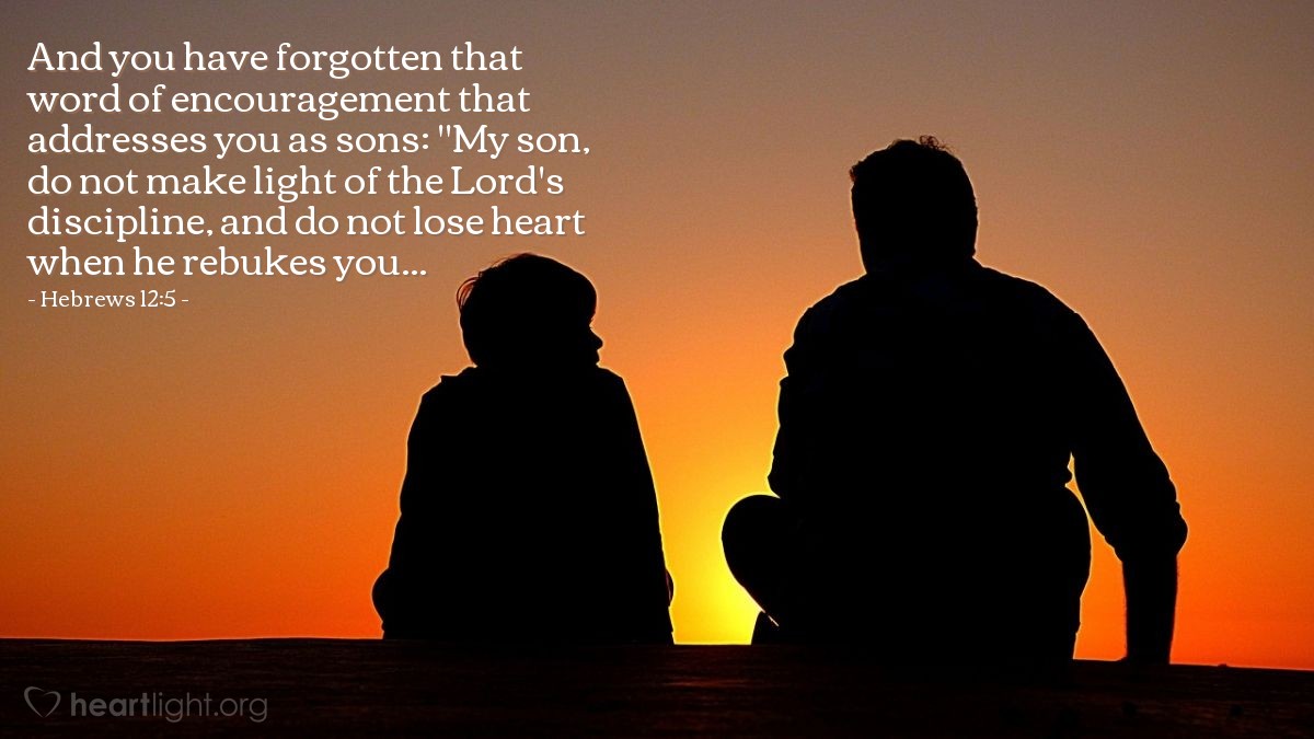 5你们又忘了那劝你们如同劝儿子的话,说,“我儿,你不可轻看主的管教,被祂责备的时候,也不可灰心。6因为主所爱的祂必管教,又鞭打凡所收纳的儿子。”
