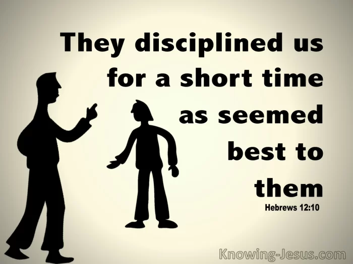 10生身的父都是暂随己意管教我们。惟有万灵的父管教我们,是要我们得益处,使我们在祂的圣洁上有分。11凡管教的事,当时不觉得快乐,反觉得愁苦。后来却为那经练过的人,结出平安的果子,就是义。