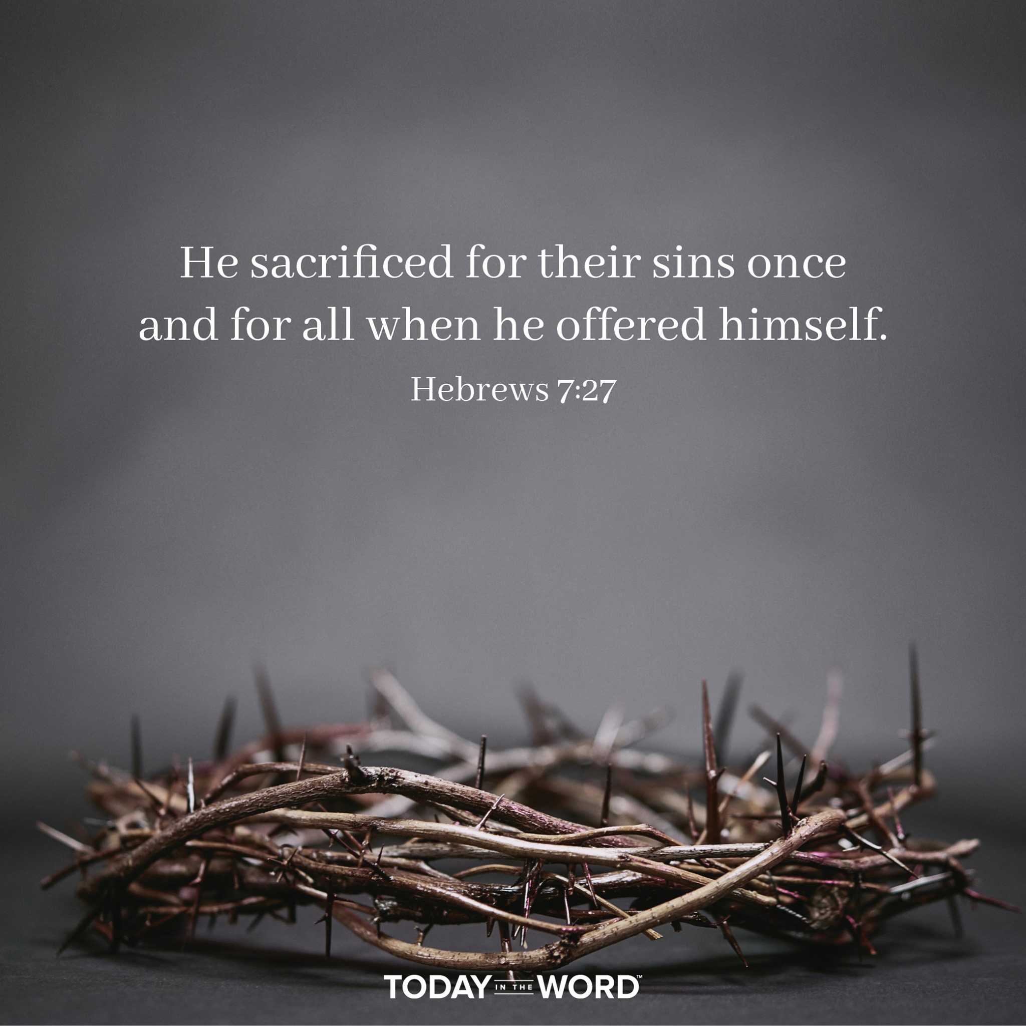 “祂不像那些大祭司,每日必须先为自己的罪,后为百姓的罪献祭;因为祂只一次将自己献上,就把这事成全了。”(来7:27)