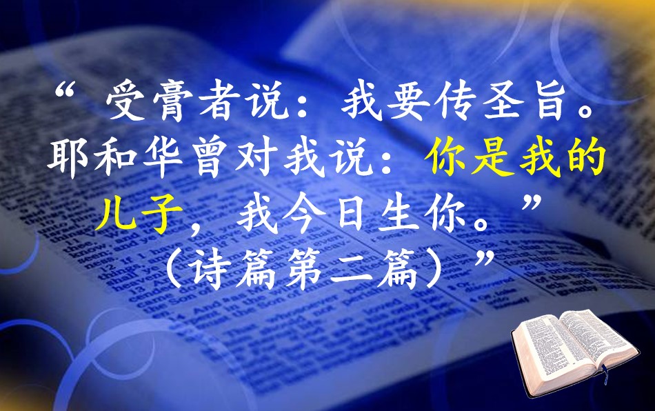 可是,犹太人自己的先知不是有话说,在诗篇第二篇,“受膏者说:我要传圣旨。耶和华曾对我说:你是我的儿子,我今日生你。”吗? 而直到今日,绝大多数的犹太人仍然抱团,一起敌挡耶和华并祂的受膏者。他们心想可以绕过神的儿子—受膏者,直接跟父神建立关系。他们多么地无知,不知道也不相信“若不借着基督,神的儿子,没有人能到父那里去。”(约14:6)