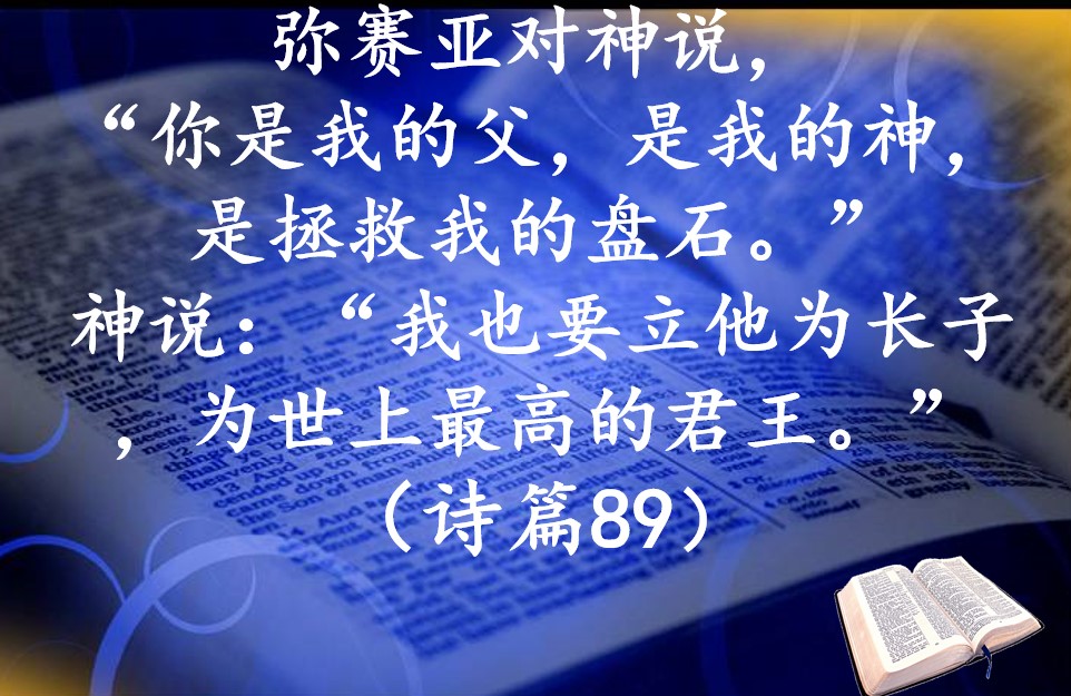 上帝选择大卫王朝作为带来弥赛亚的计划。犹太人是期待弥赛亚来到的民族,那么,怎么会忽略这里神说要立弥赛亚为长子,为世上最高的君王呢?