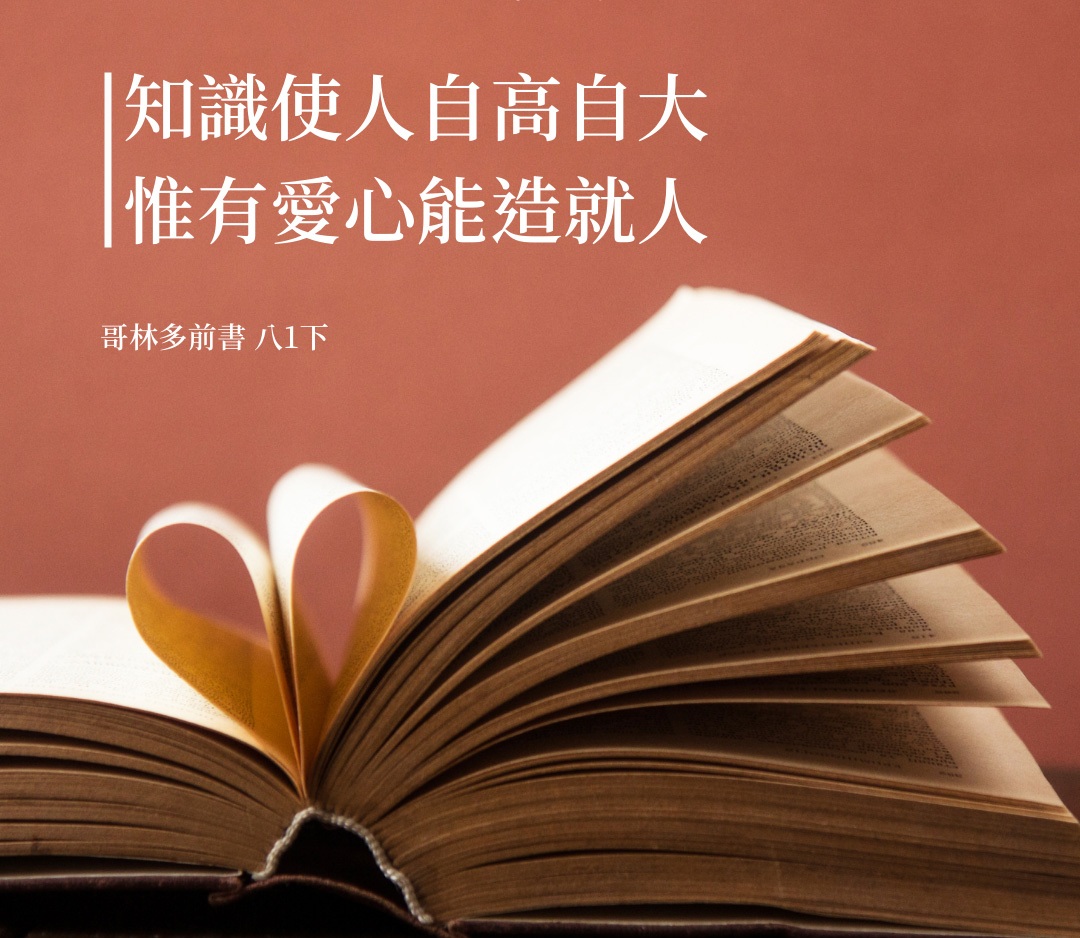 哥林多前书8:1,“论到祭偶像之物,我们晓得我们都有知识。但知识是叫人自高自大,唯有爱心能造就人。”