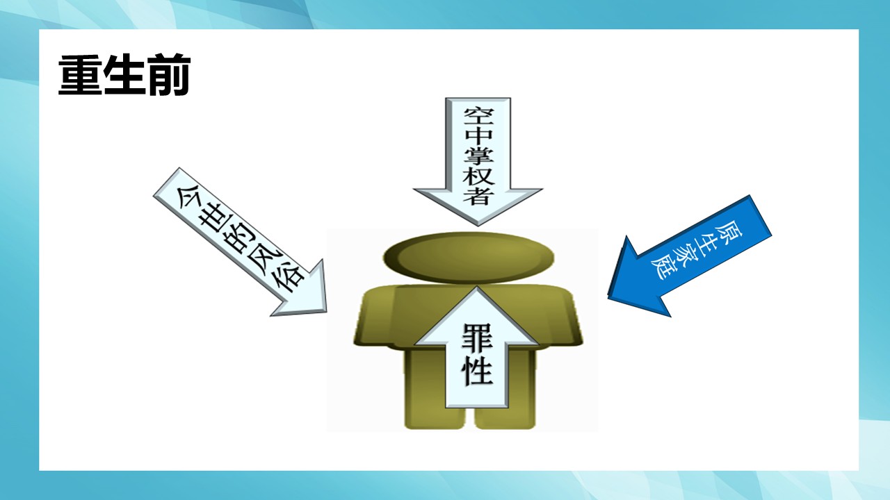 结语:圣灵重生的教义在辅导中太重要了。圣灵重生人会带来当事人取悦对象的改变,这是不信主的心理学辅导不明白的属灵奥秘。