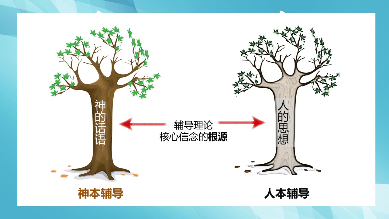 我们认识到,自亚当夏娃堕落后,一个不认识神、没被圣灵重生的人,他的价值信念方方面面都偏离了上帝的标准。这样的心理学家带出的辅导系统,肯定与根基于圣经话语的辅导,会是截然不同的两套不同的辅导系统,两套不同的核心信念。当然,接下来带领人的内容和方向也就不同了。一个是以神的启示为辅导理论的核心,一个是以堕落的人的自救思想体系为辅导理论的核心。