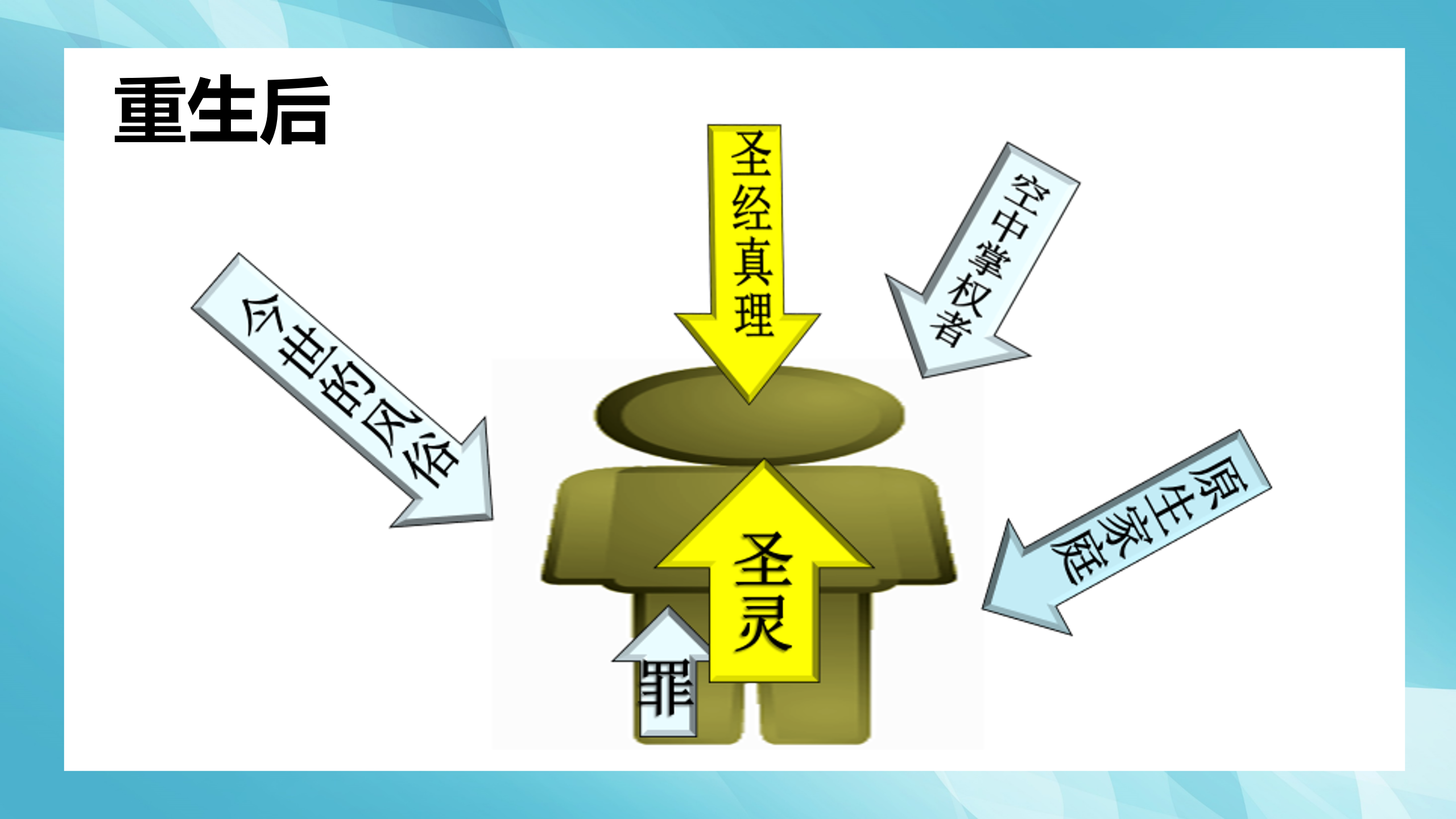 一个被圣灵重生的人,里面有了圣灵的内住,加上圣经真理的引导,所以一个重生得救的人所受的影响和一个没被圣灵重生的人所受的影响是不同的。今天如果基督徒去接受非基督徒心理学家的辅导,会出现很多偏差,特别在完全否认神和人的罪性的情况下,根本不能把人带向活水的泉源。