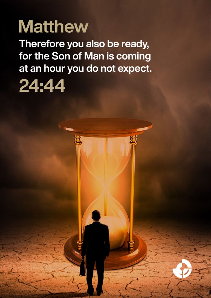 44所以你们也要预备。因为你们想不到的时候,人子就来了。(太24:44)