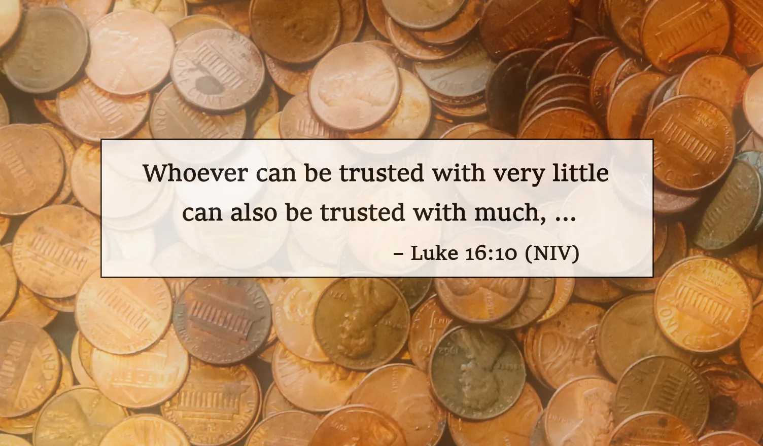 从小事开始操练自己的忠心。路16:10 人在最小的事上忠心,在大事上也忠心。在最小的事上不义,在大事上也不义。11 倘若你们在不义的钱财上不忠心,谁还把那真实的钱财托付你们呢?12 倘若你们在别人的东西上不忠心,谁还把你们自己的东西给你们呢?