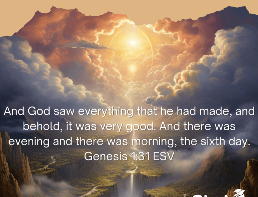 起初,上帝创造人类以及万物(光,昼夜,空气,水,天地海,日月星,动植物,鸟鱼虫)之后,“神看着一切所造的都甚好”(创1:31)