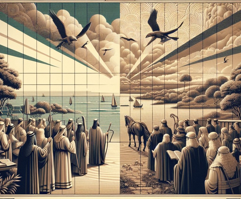 “保罗就站起来,举手说,以色列人,和一切敬畏神的人,请听。这以色列民的神,拣选了我们的祖宗,当民寄居埃及的时候,抬举他们,用大能的手领他们出来。又在旷野容忍他们约有四十年。既灭了迦南地七族的人,就把那地分给他们为业。此后,给他们设立士师,约有四百五十年,直到先知撒母耳的时候。”(徒13:16–20)