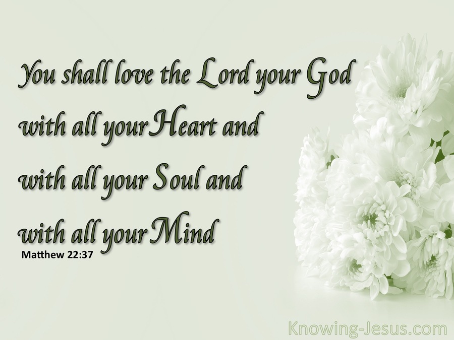 所以,上帝话语最最基本的思想是爱神爱人,爱上帝!而不是上帝爱我,耶稣爱我。37节经文的出处是申命记6:5,“你要尽心,尽性,尽力爱耶和华你的神。”而且申命记是旧约强调最多的,要爱耶和华上帝的经卷。申命记的写作背景是摩西临终之前给以色列人最终的交代。摩西因为得罪耶和华,所以无法带领以色列人进入迦南地,只能死在约旦河东,申命记4:21–22。所以,是在这样的背景下, 摩西临终之前,一而再,再而三地告诫以色列人,要爱耶和华你的神(申11:1,13,22;13:3;19:9;30:6,16,20)!同样的,约书亚最后也是这样提醒以色列人(书22:5;23:11)。