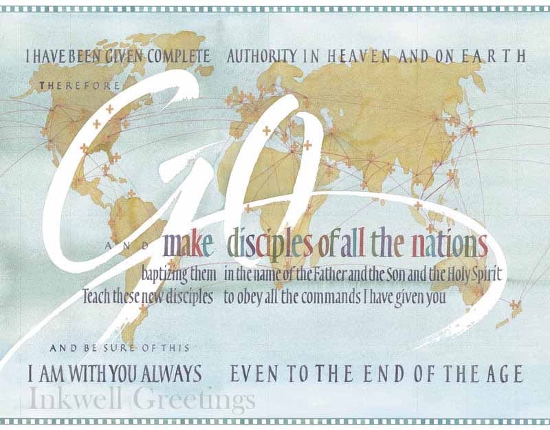 18耶稣进前来,对他们说,天上地下所有的权柄,都赐给我了。19所以你们要去,使万民作我的门徒,奉父子圣灵的名,给他们施洗。(或作给他们施洗,归于父子圣灵的名)20凡我所吩咐你们的,都教训他们遵守,我就常与你们同在,直到世界的末了。