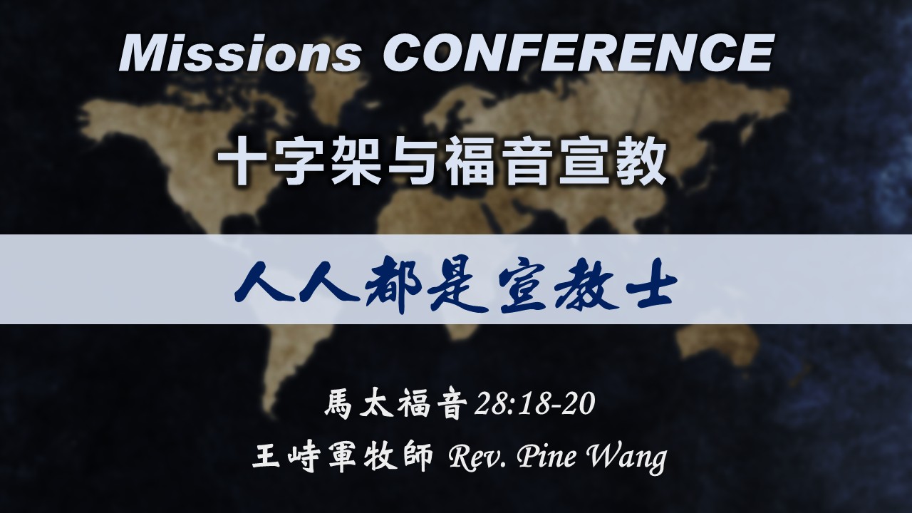 今天,我们会跟据马太福音28:18–20,特别是这三节经文中的三个主要动词:“赐给”( ἐδόθη:All authority in heaven and on earth has been given to me.),“使…作门徒”( μαθητεύσατε:make disciples of all nations),“(是)与…同在”( εἰμι:I am with you always),来看这段经文完整的意义。