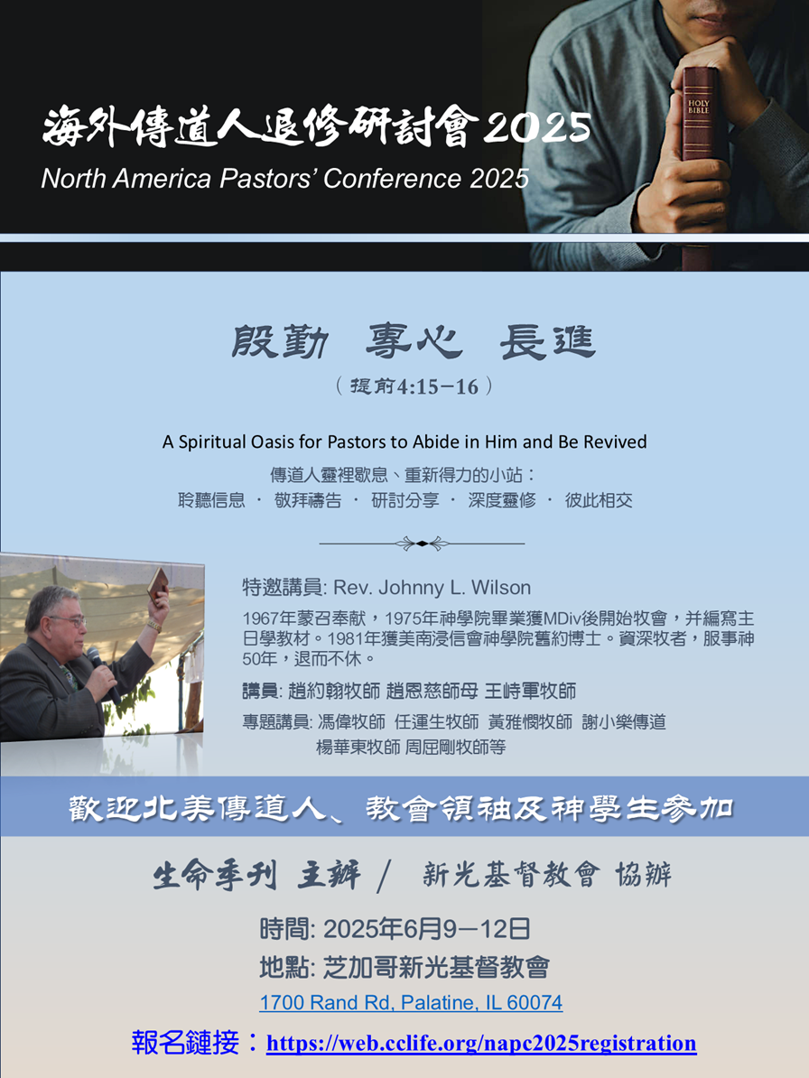 本届退修研讨会由生命季刊主办,芝加哥新光基督教会协办: