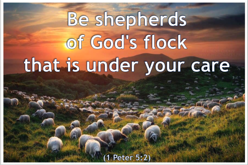 “务要牧养在你们中间神的群羊,按着神旨意照管他们;不是出于勉强,乃是出于甘心;也不是因为贪财,乃是出于乐意。”(彼得前书5:2)