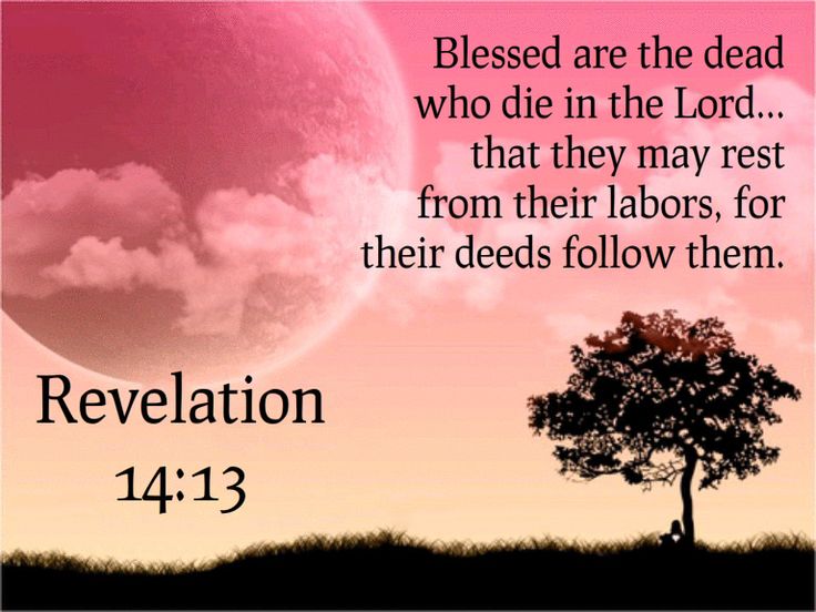 我听见从天上有声音说:“你要写下:从今以后,在主里面而死的人有福了!”圣灵说:“是的,他们息了自己的劳苦,做工的果效也随着他们。”(启示录14:13)